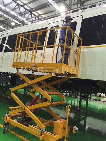 500KG剪叉式液压升降平台应用于中车南宁轨道交通