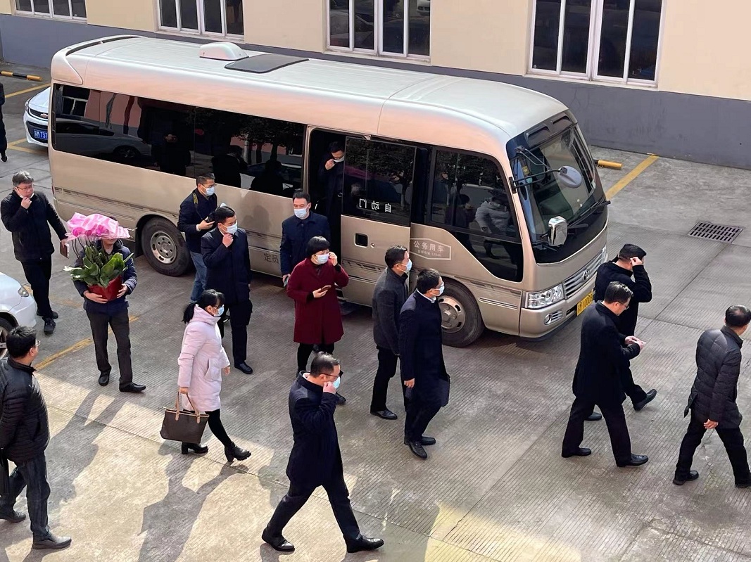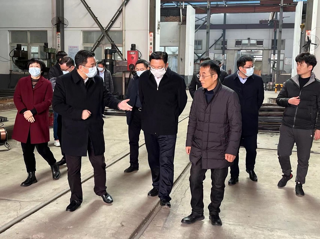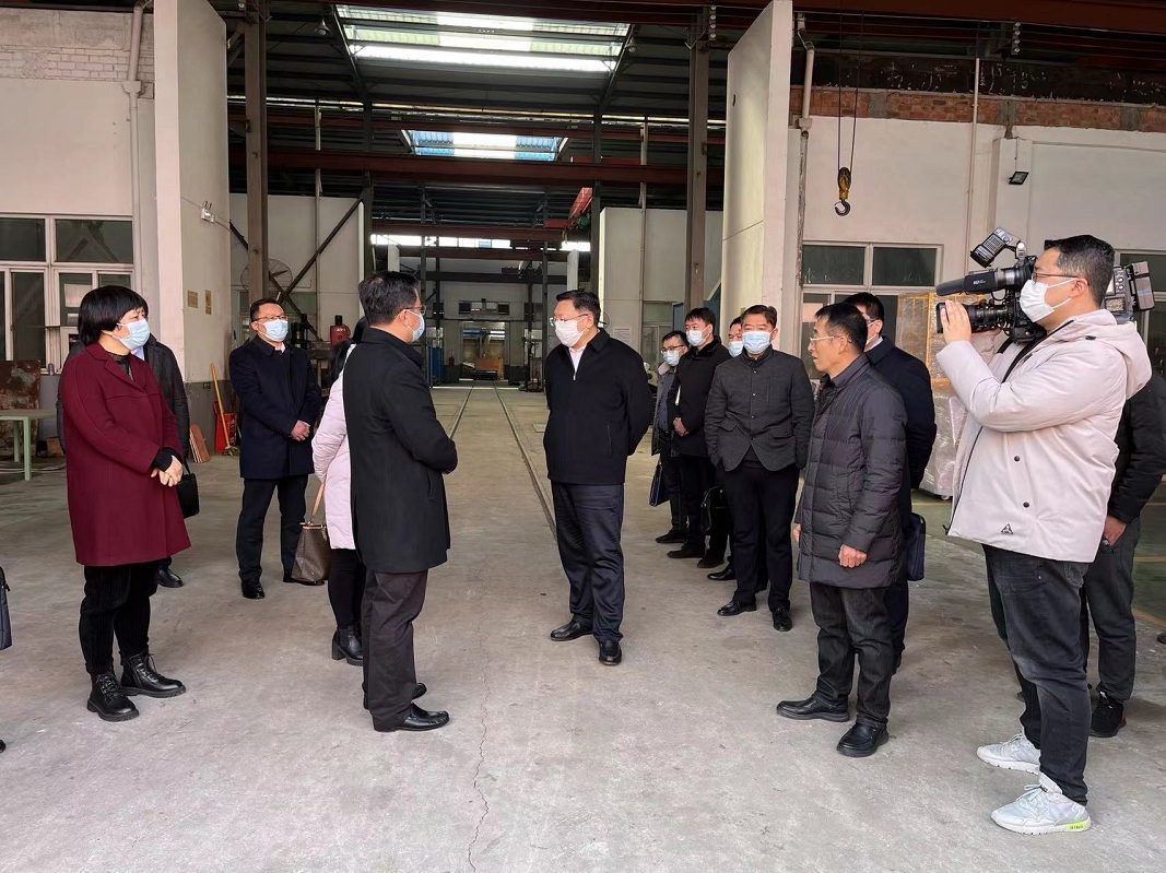 2022年2月10日上午11时许,泰州市海陵区区委书记孙群书记等领导一行来到我司进行走访调研,针对我司年度发展规划提出指导性意见,我司董事长丁克芳先生及董事会成员陪同视察!