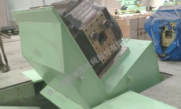设备包括1套翻转机架和2支翻转油缸;翻转机架在翻转油缸的推拉下围绕中心轴转动实现90度翻转,翻转结束自动停车,翻转与复位可正反循环工作。