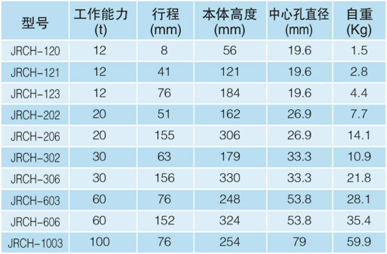 我公司设计制造的单作用空心张拉千斤顶JRCH系列使用空心柱塞的设计,既可作用于推力又可以作用于拉力;适用于各类测试、维修以及需要张拉力的特殊应用场合。