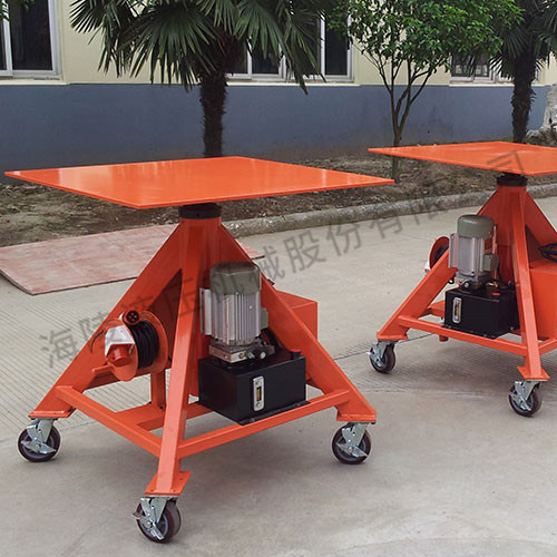 我公司生产的门机构安装液压升降平台设备用于车辆客室侧门承载驱动机构安装作业。平台设有过载保护装置,具有一定的抗偏载能力;平台工作面可旋转360°,粘接10mm厚软橡胶保护垫,工作台面安装有门机构支撑工装,同时在平台上下极限位置安装限位装置,在升降范围内,能任意调节平台的工作高度。